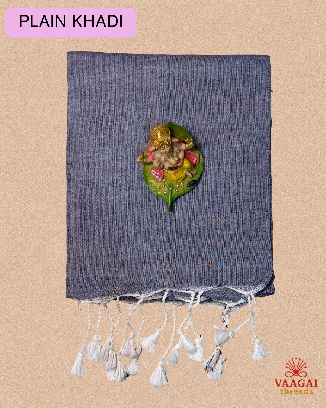 Handwoven Pure Plain Khadi Cotton Saree – Cool Gray